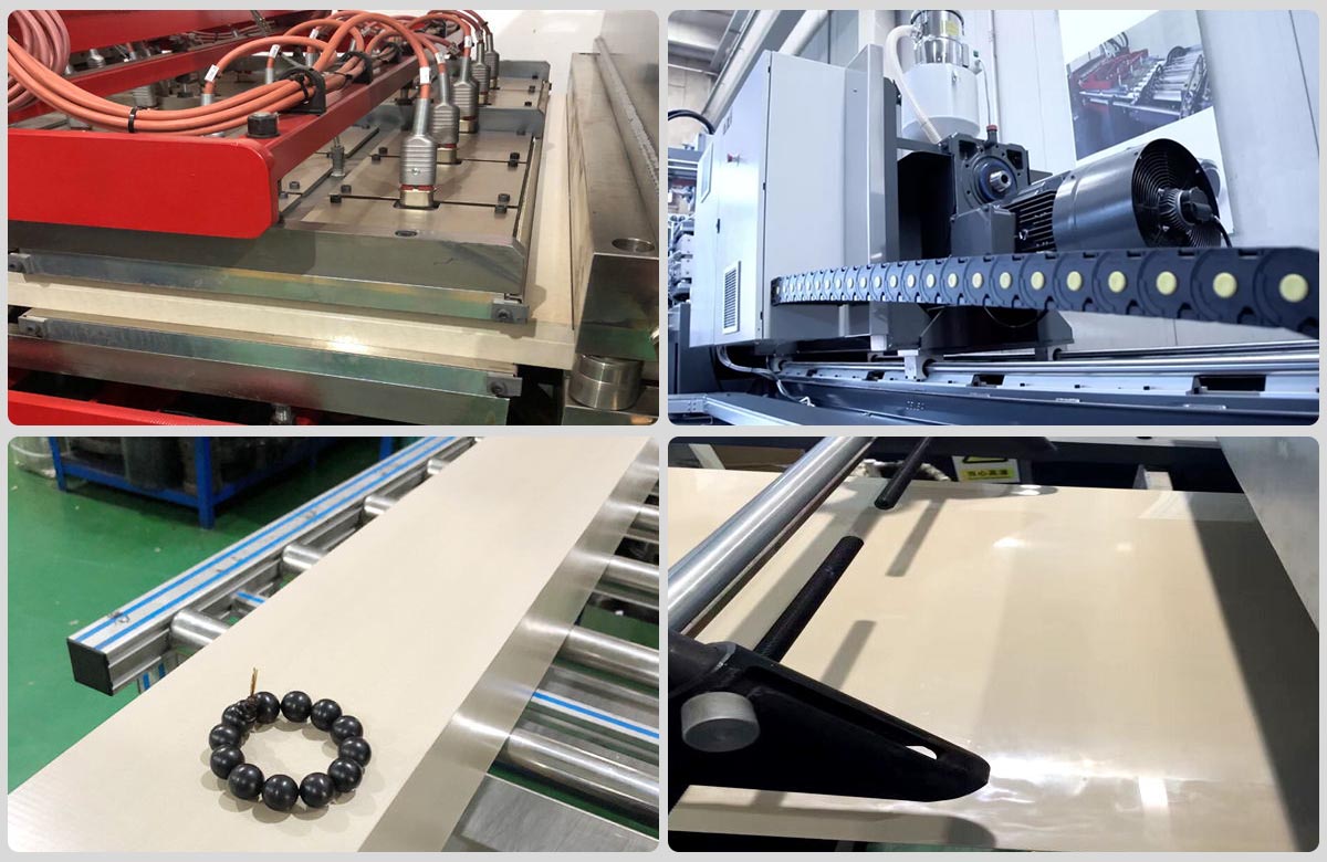 连续挤出的PEEK板材挤出生产线,可挤出PEEK方板、PEEK片材等多种规格,可挤出1250mm宽PEEK板材。