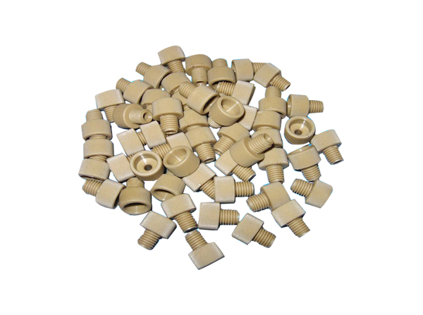 PEEK在分析测试仪器行业中已经得到了非常成功的应用,使用PEEK材料制成的管路和接头会非常方便。典型产品形式有:PEEK手紧接头、PEEK螺丝、PEEK刃环、PEEK毛细管、PEEK二通三通、PEEK内外丝转接头、PEEK送样针、PEEK消解罐、PEEK轴套、PEEK密封圈、PEEK穿板接头,PEEK高低压壳体,PEEK泵头等。