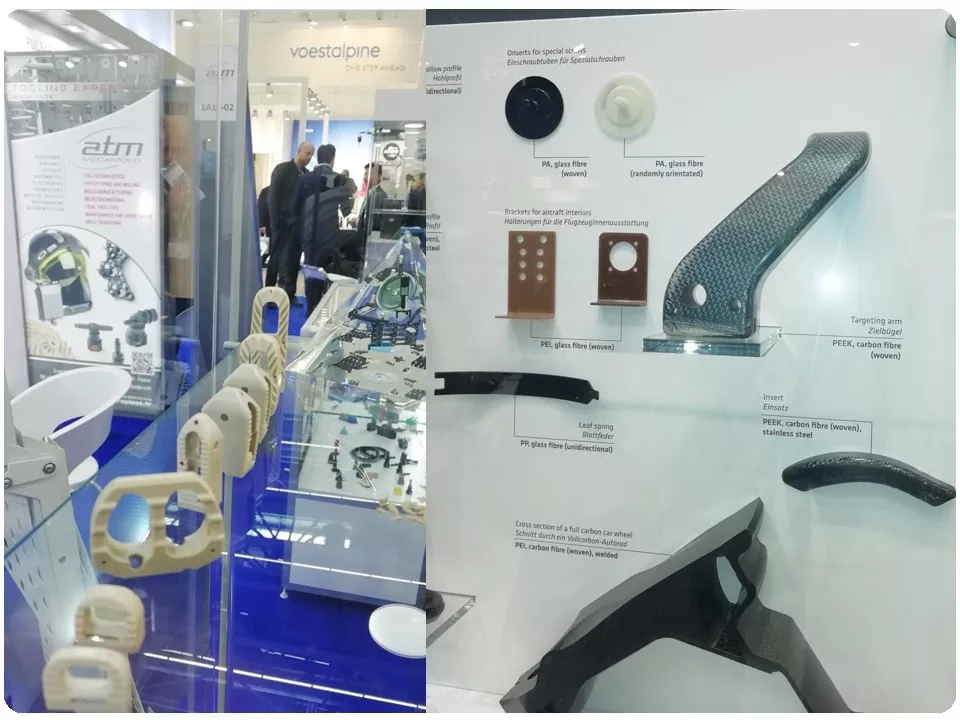 其他各国PEEK生产商同样在此次展会上展示了许多特别的产品,例如PEEK弯折管、PEEK人工心脏和连续碳纤维CF/PEEK热塑性复合材料骨科器械等。