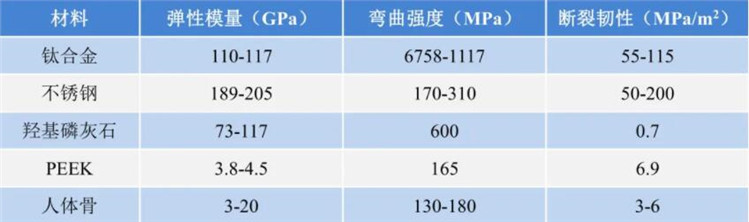 ▲ 不同植入材料的力学性能与天然骨的比较[1]